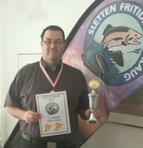 Ja, når nu jeg ikke får fisket så meget i disse dage, så er det da dejligt at modtage prisen som Årets Fisker 2017 i Sletten Fritidsfiskerlaug.