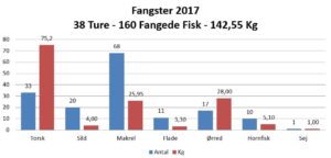 Til gengæld må mine ture på havet generelt betragtes som en succes, jeg har godt nok noteret 6 nulture ud af 25 , men det er mest min egen skyld, fordi jeg har genudsat et hav af torsk. I 2017 hjemtog jeg trods nulture mere end 75 kg torsk, så derfor blev det lidt ok at lade dem slippe. Makrel fiskeriet blev helt vildt i år med 2 ture som vil huskes længe, og med en ny PR på 950g.
