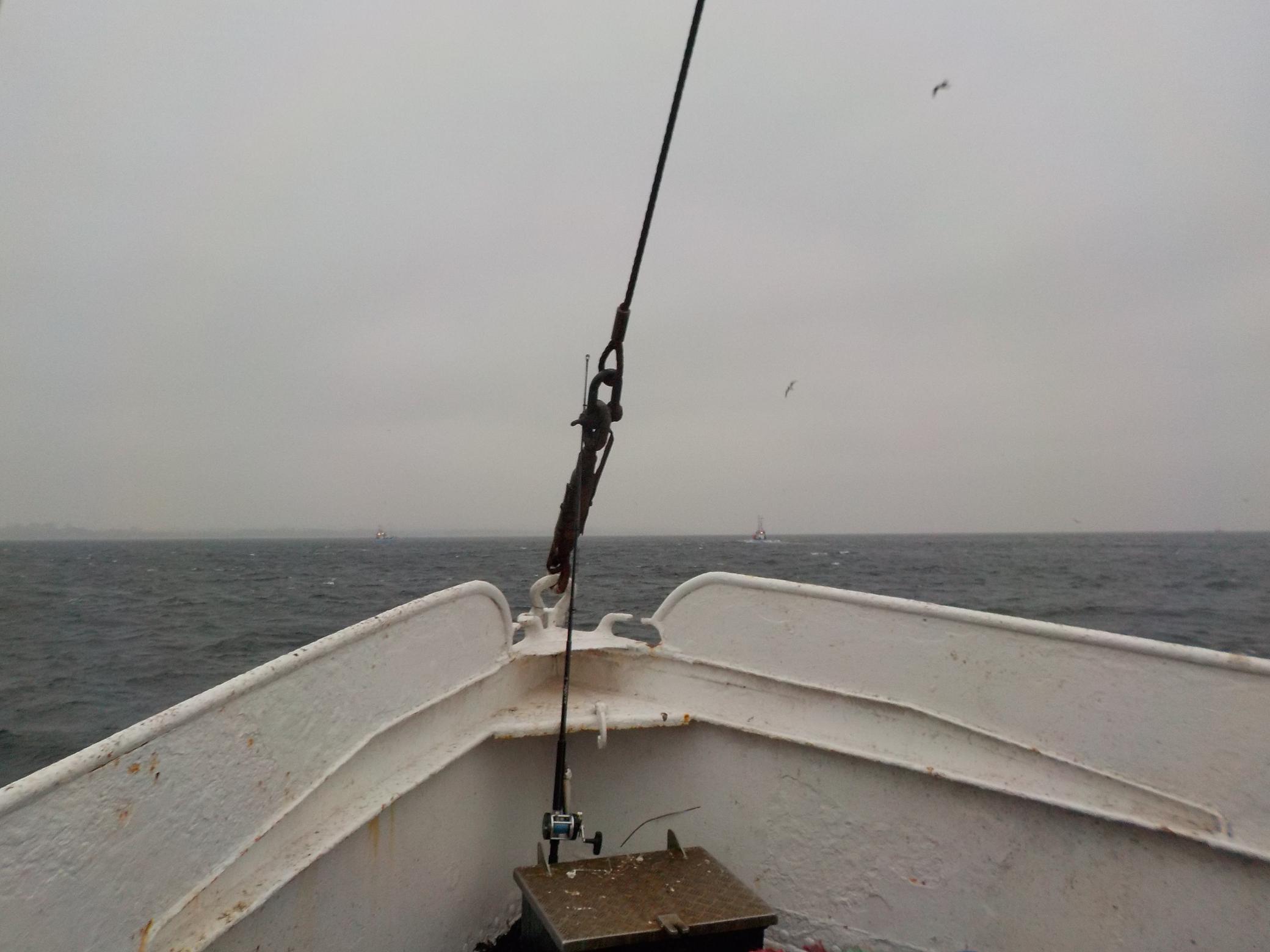 Det meste af dagens fiskeri foregik ved kobberværket, ud for den svenske kyst. Vinden skulle angiveligt have været lidt mindre der, men vind var det.