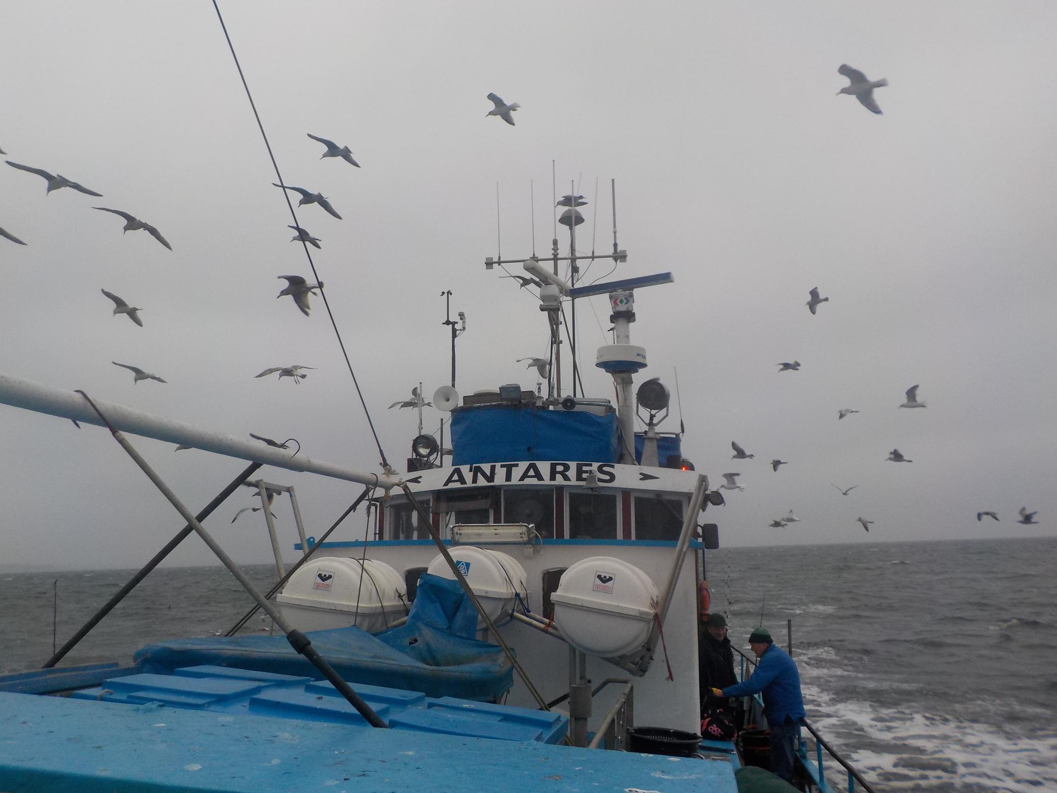 I dag stod den på en morgen efter sild og torsk. Egentlig skulle vi have sejlet med Hanne Berit fra Rungsted Havn, men pga. vejret blev vi rykket til Anthares fra Helsingør.
