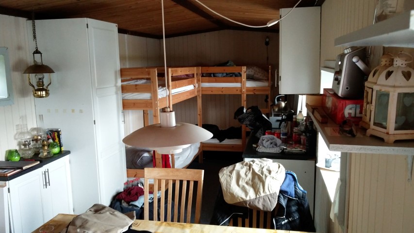 Mad tilberedning kan ske via gasplus eller grill, og toilettet er et muld toilet som er varmt at side på, og som ikke lugter tiltrods for det manglende vand.