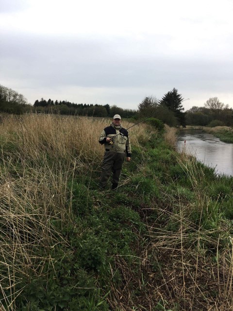 Søndag startede som lørdag med morgenmad og madpakker. Planen denne dag var at fiske langs åen ved Godset. Så iført waders gik Grumpy og jeg afsted, men Esben blev tilbage og gjorde rent.