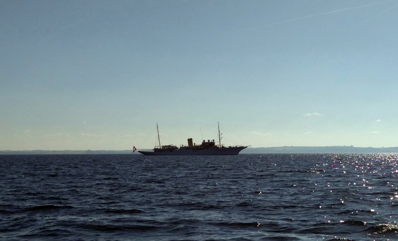 På vej mod revet fik vi lige en flot syn på Kongeskibet Dannebrog, som sejlede smukt ned langs Hven mod syd.