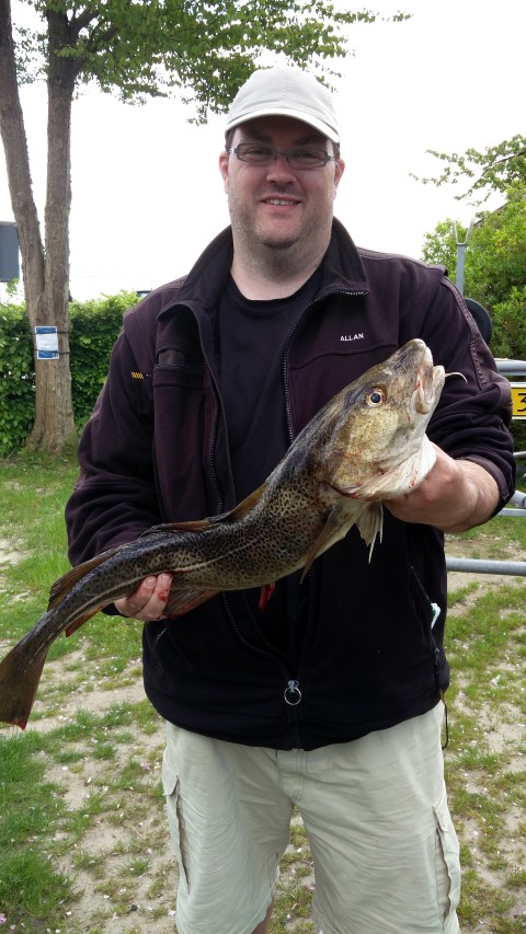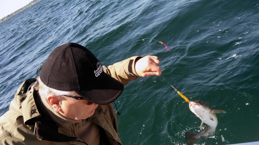 Med troen i behold forsatte fiskeriet, og igen var det mig der fik hug. Denne gang var fisken noget større, og en fisk torsk kom ombord. På det tidspunkt kunne jeg godt fornemme de andres vrissen, og der blev skiftet til sølv/gule lette pirke ala min.