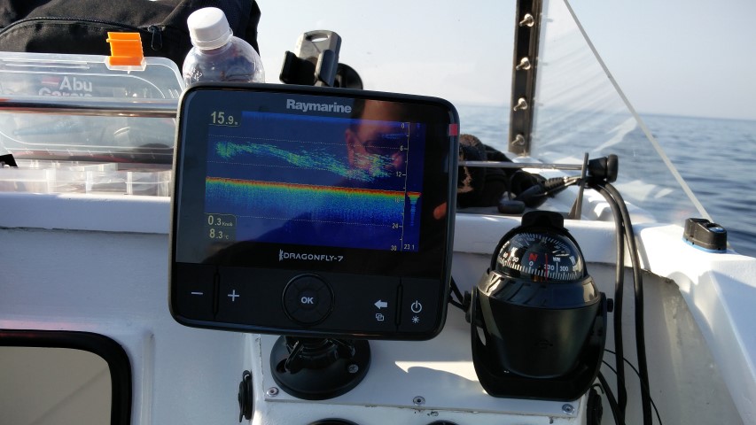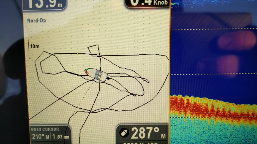 Efter noget indstilling af ekkoloddet viste det næsten den enkelte fisk, og ikke mindst den indbyggede kortblotter var super.