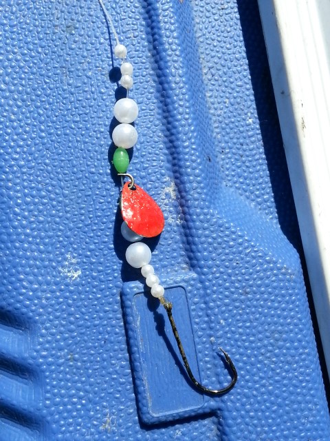 Efter endnu noget tid med gennemløber skiftede jeg igen tilbage til bombarda. Der skulle dog igen gå lang tid før der endelig var hug igen. En frisk kombination af sort og grøn powerbait snoet sammen, gav en meget stille hug. Jeg var egentlig i tvivl om det var et hug eller om det blot var en bølge, men når fiskeriet er svært så må alt der kan være et hug, betragtes som et hug. Det viste sig dog at være et hug, men der skulle gå næsten et minut før fisken valgte at trække line for alvor.