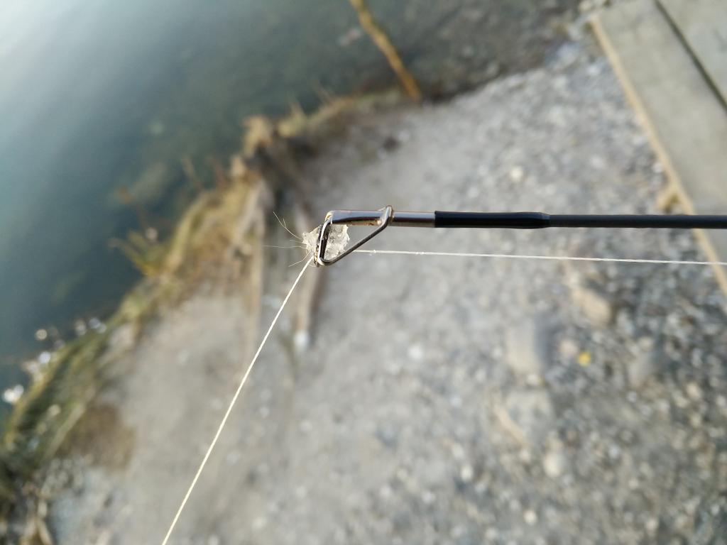 Det gav bonus efter ca. 30 min., først et godt ryg i stangen, derefter var der lidt ro på, og jeg var faktisk ikke sikker på om der var bid. Men fisken var svømmet ind mod bredden, og dermed havde den ikke behov for at trække yderligere line. Det opdagende jeg selvfølgelig først da jeg strammede linen op.