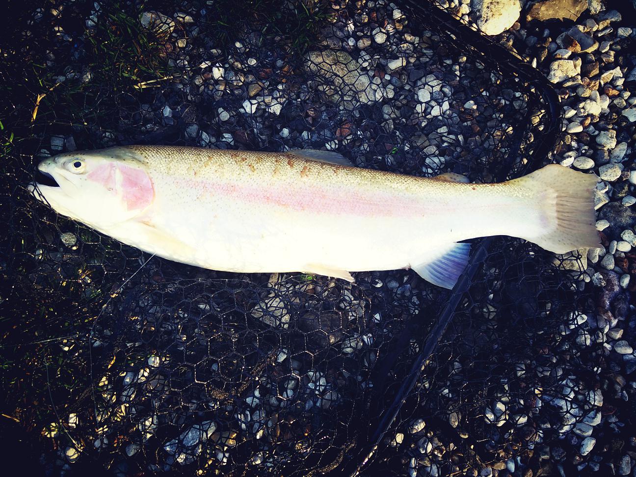 Efter nogle minutters fight kunne jeg dog konstatere at jeg havde landet en fin ørred på 1,25 kg., så trods der skulle gå 3 timer så var det en dejlig følelse.