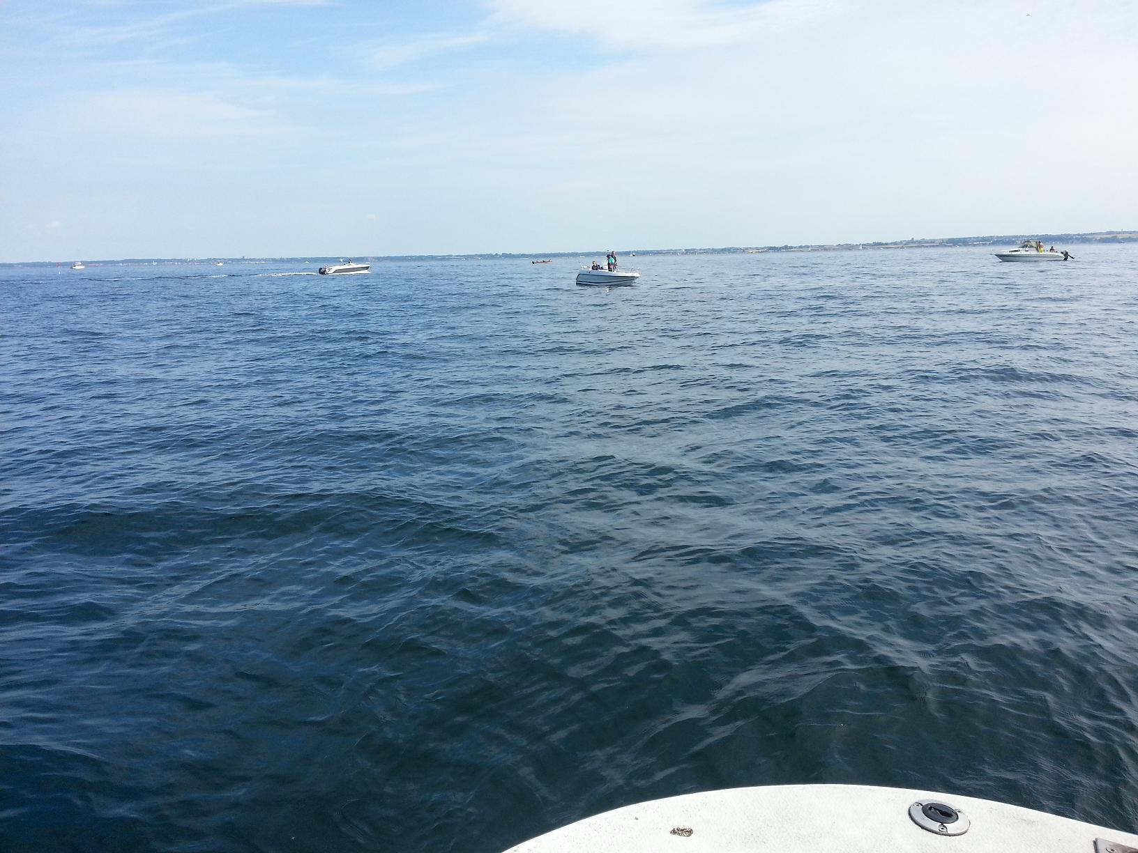 Fremme ved spottet for de sidste par ture, kunne vi konstatere at der var de ikke. Vi søgte derfor videre mod en klump af både som vist havde fået samme idé. Fremme ved bådene kunne vi hurtigt se at der var gang i fiskeriet. Flere af bådene havde rigget til med Ruby Duby, en blanding af hakket fisk som sænkes ned i vandet. Dette giver en duftspor som lokker makrellerne til.