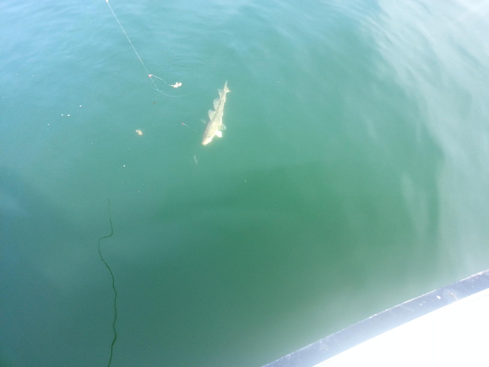 Vi startede ud på 3-6 meters vand, og fik hurtigt landet en fin torsk som dog fik friheden igen. Ellers gik de næste timer med noget nær totalt stilhed i fangsterne. Pludselig var der dog hug, og selv om selve fighten ikke var noget at skrive om, så fik jeg dog landet en fin blank ørred, som desværre var noget under mål.