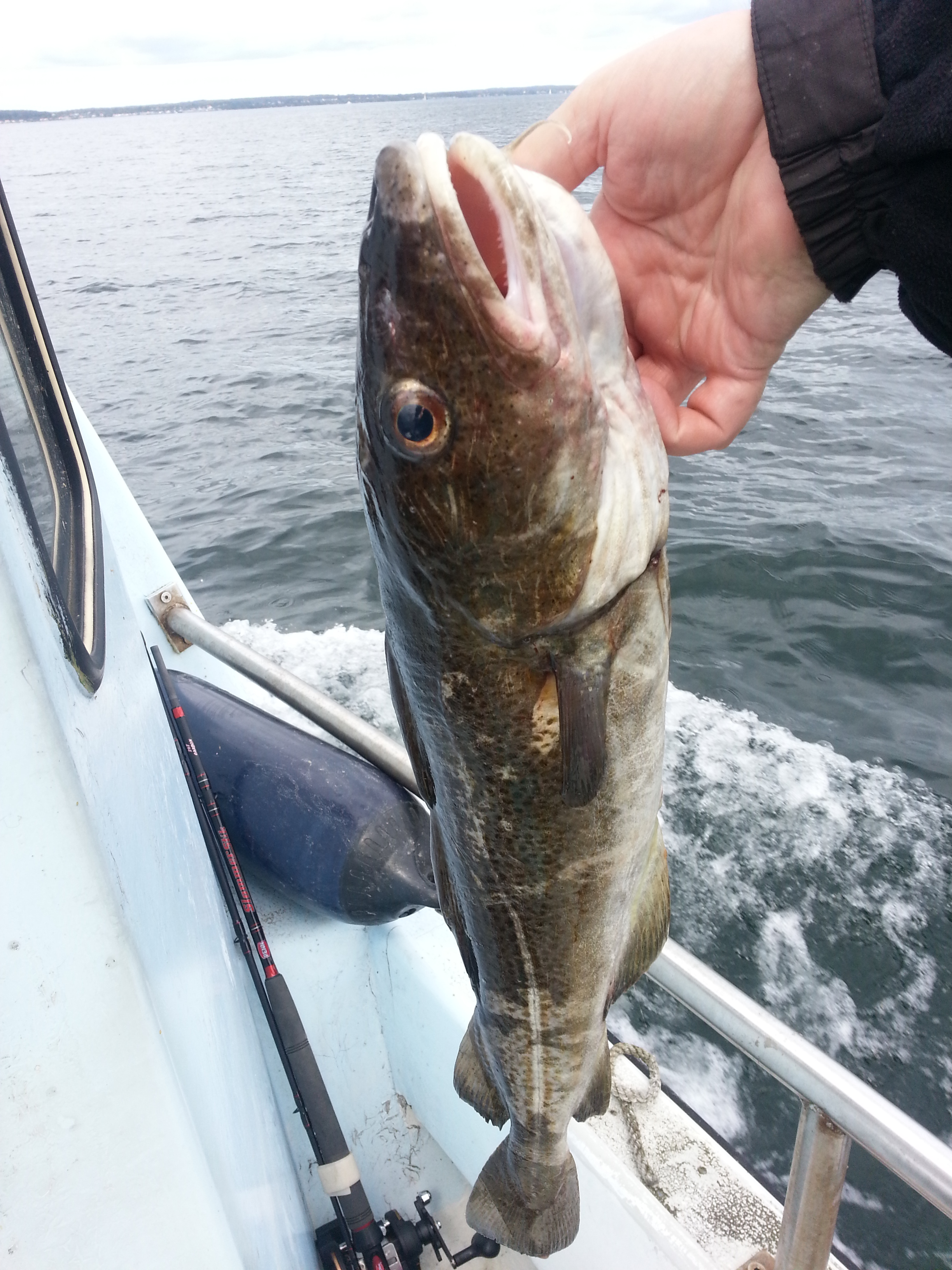 Efter godt 5 timer på sundet var vi igen i havn, med blot 2 torsk i spanden.